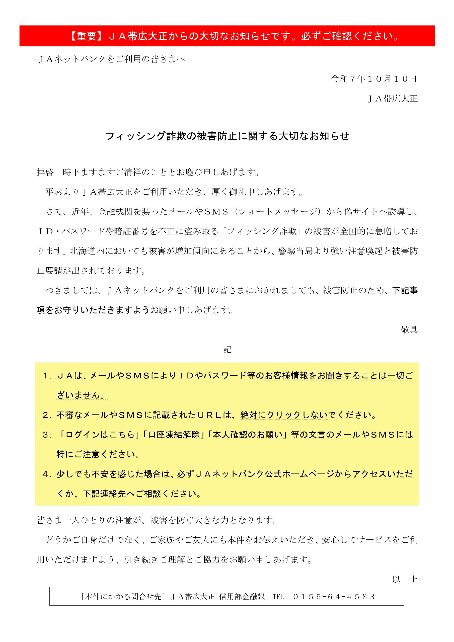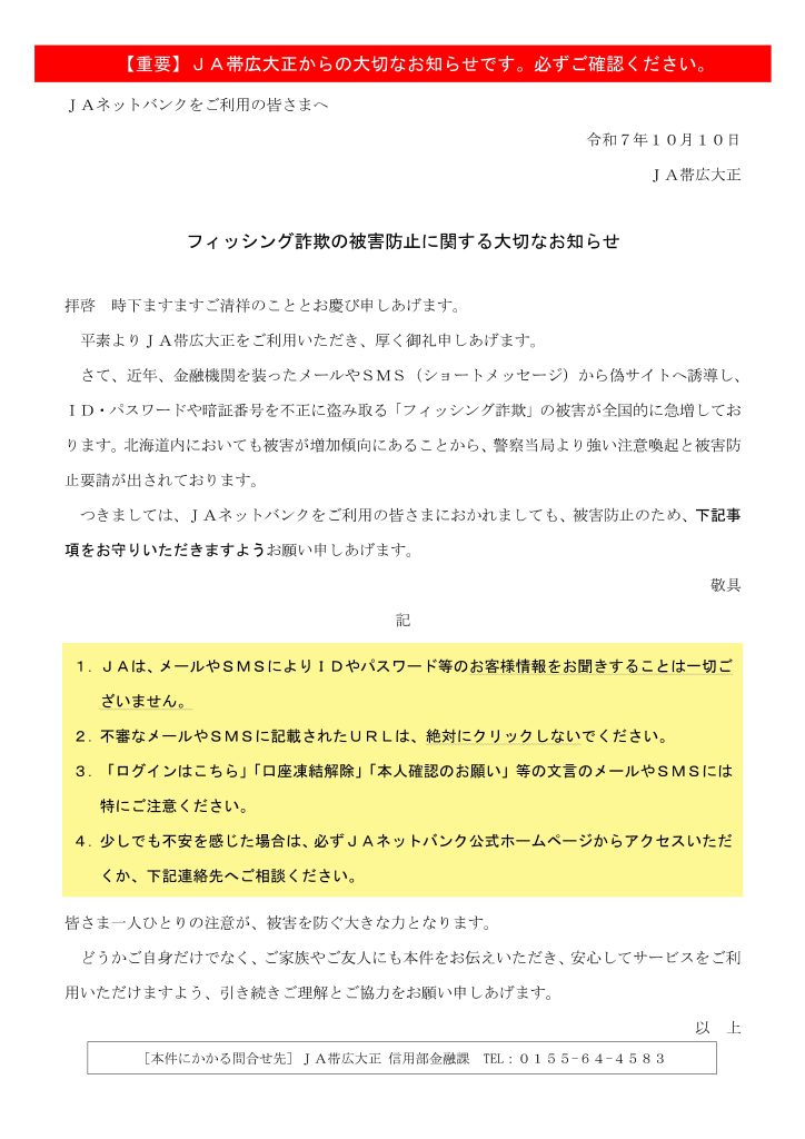 フィッシング詐欺の被害防止に関する大切なお知らせ